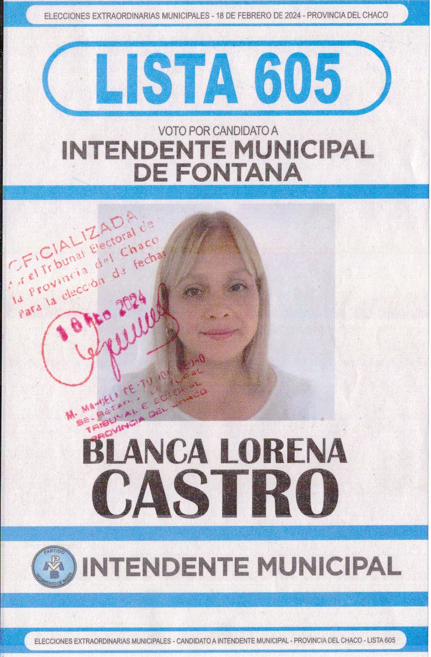 Boletas Fontana 2024 LISTA 605 - PARTIDO MOVIMIENTO DE BASES LISTA 652 - ALIANZA FRENTE CHAQUEÑO LISTA 653 - ALIANZA FONTANA CAMBIA LISTA 659 - LA LIBERTA AVANZA LISTA 747 - PARTIDO PROYECTO RENOVADOR