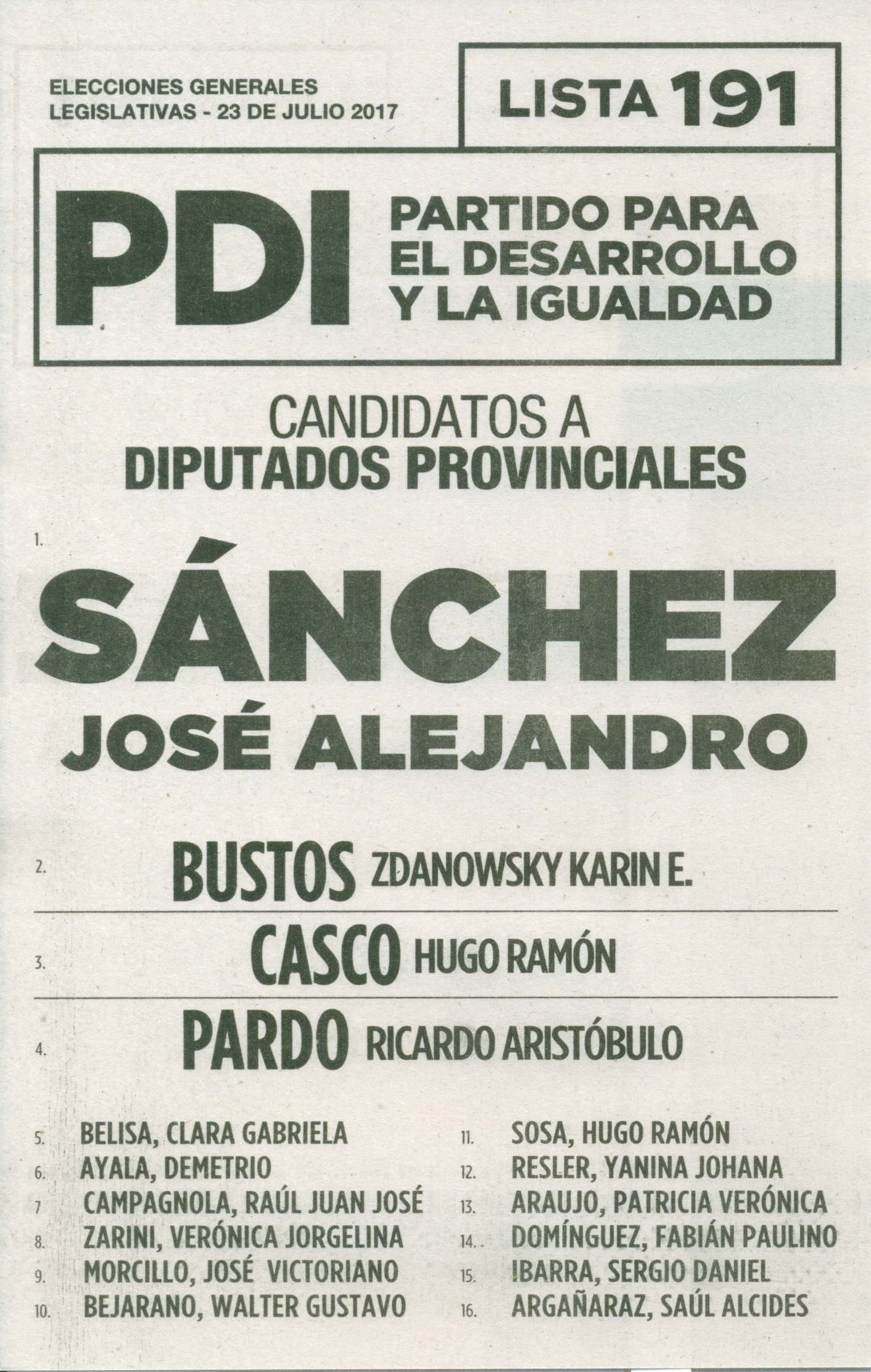 | 191 | PARTIDO PARA EL DESARROLLO Y LA IGUALDAD | PDI | PARTIDO |