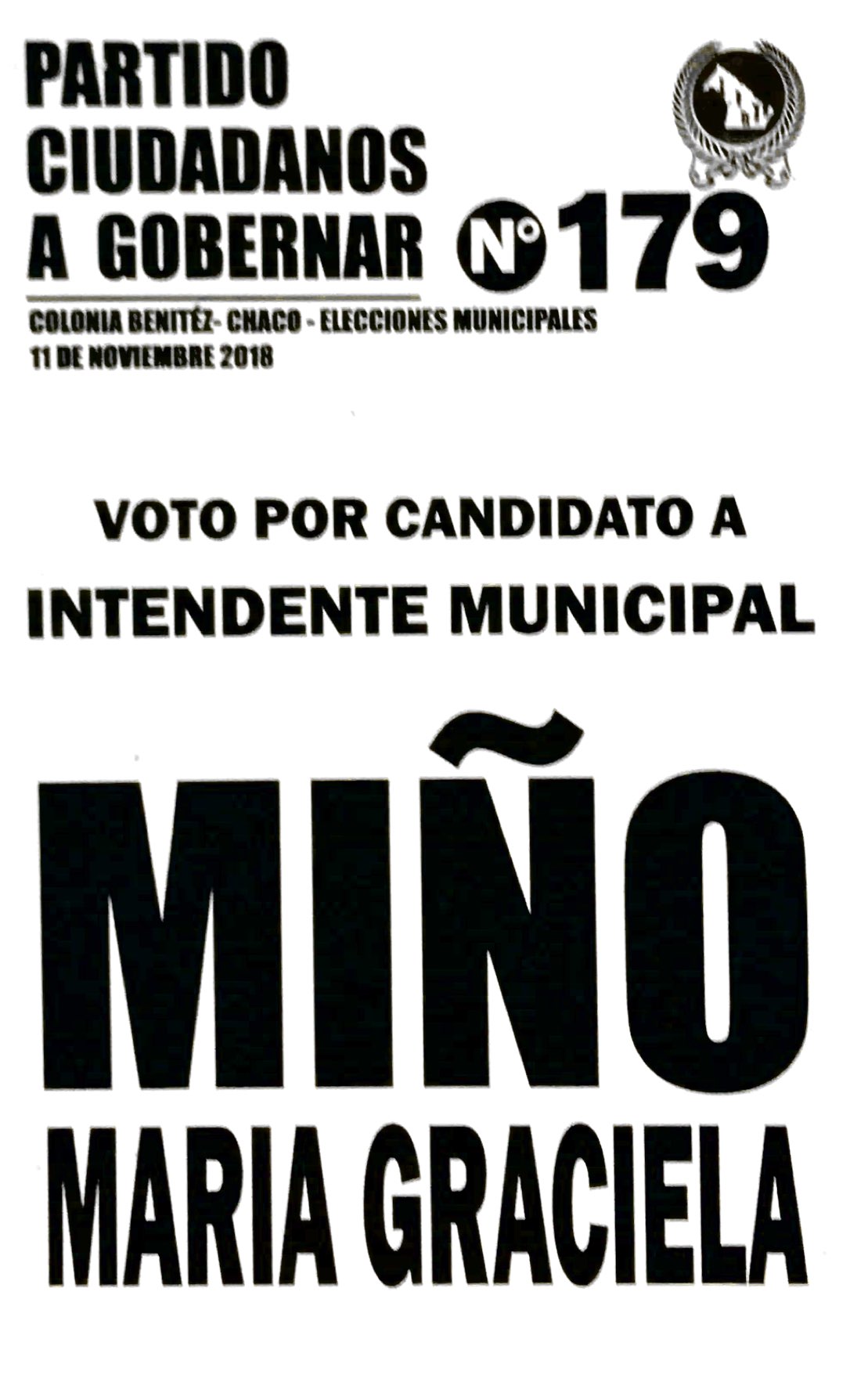CIUDADANOS A GOBERNAR S/OFICIALIZACIÓN DE CANDIDATO COLONIA BENÍTEZ