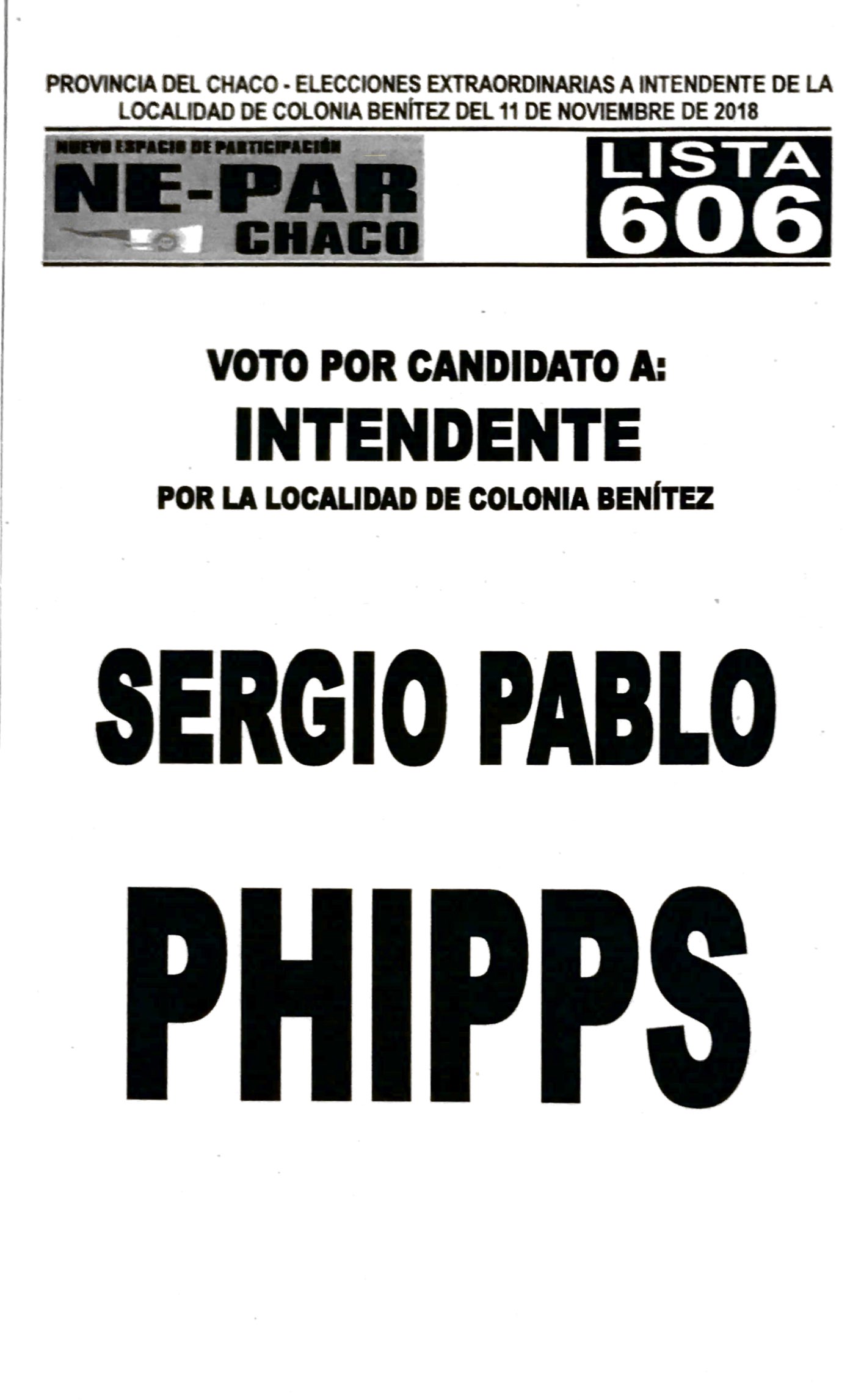 NUEVO ESPACIO DE PARTICIPACIÓN - NEPAR - S/OFICIALIZACIÓN CANDIDATO COLONIA BENÍTEZ