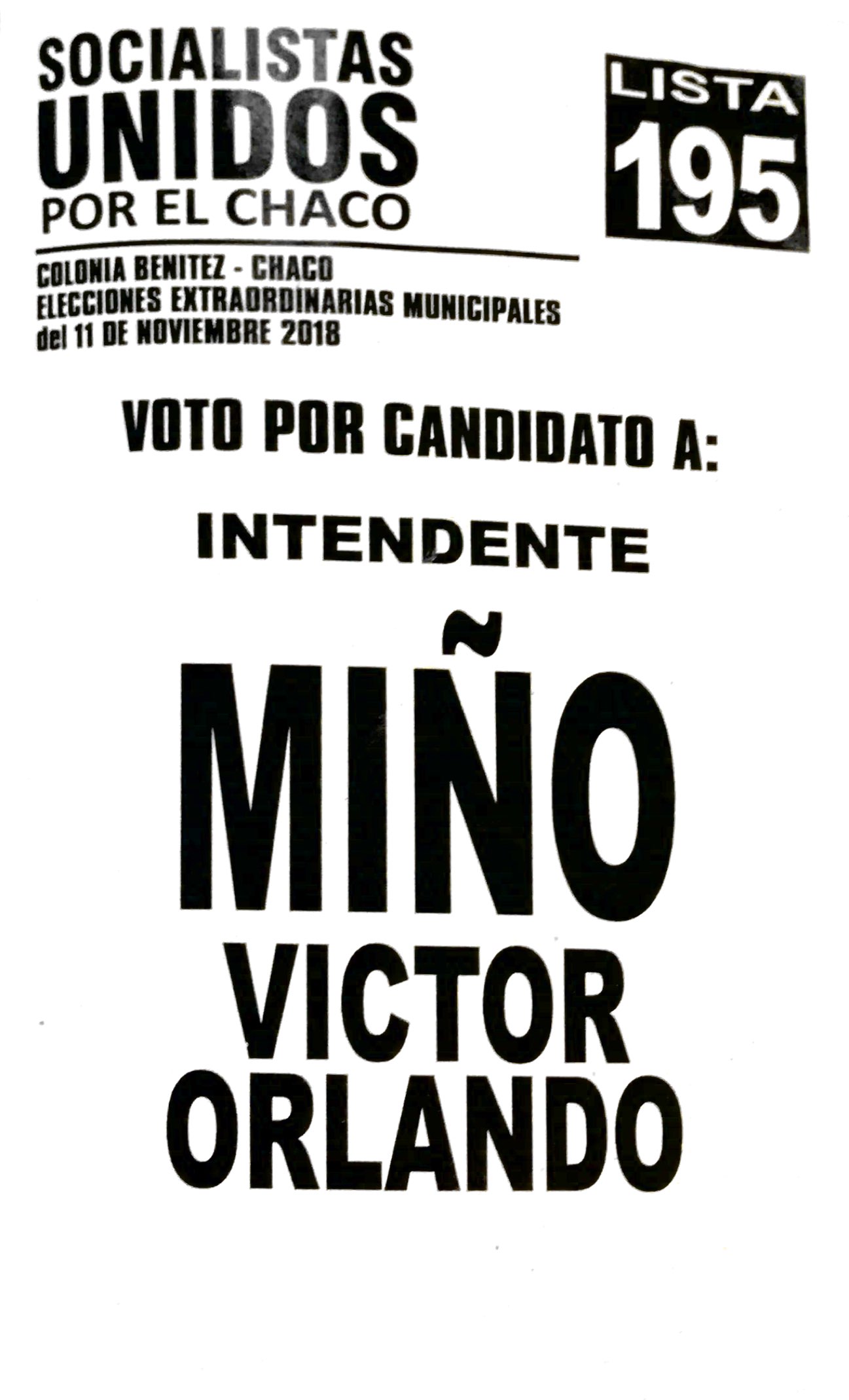 PARTIDO SOCIALISTAS UNIDOS POR EL CHACO S/OFICIALIZACIÓN DE CANDIDATO COLONIA BENÍTEZ